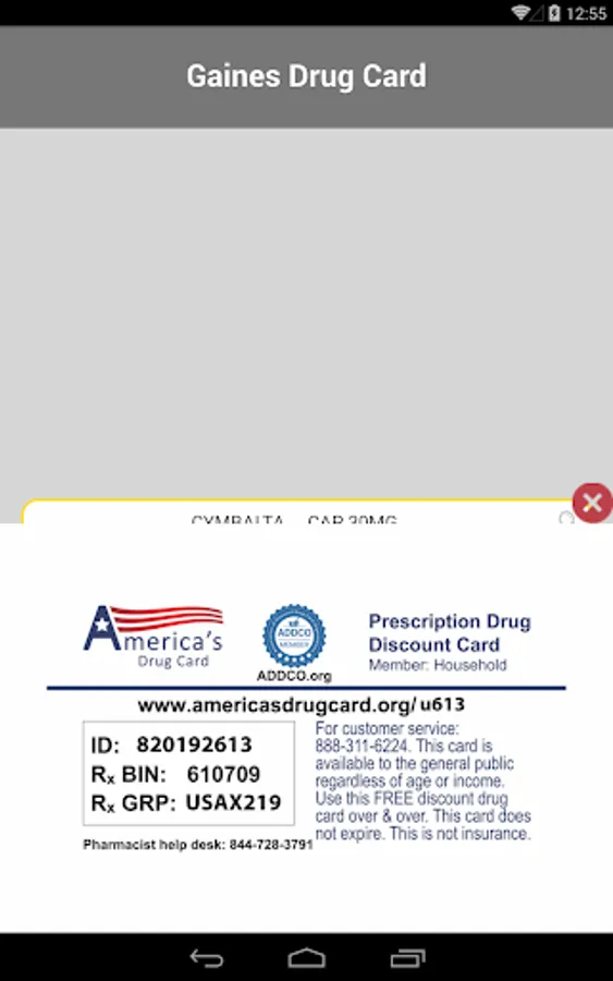 This free app sponsored by Faye Gaines will allow you to save an average of 15-55% on your prescription medications, look up prescription drug pricing, pharmacy locations and answer frequently asked questions.