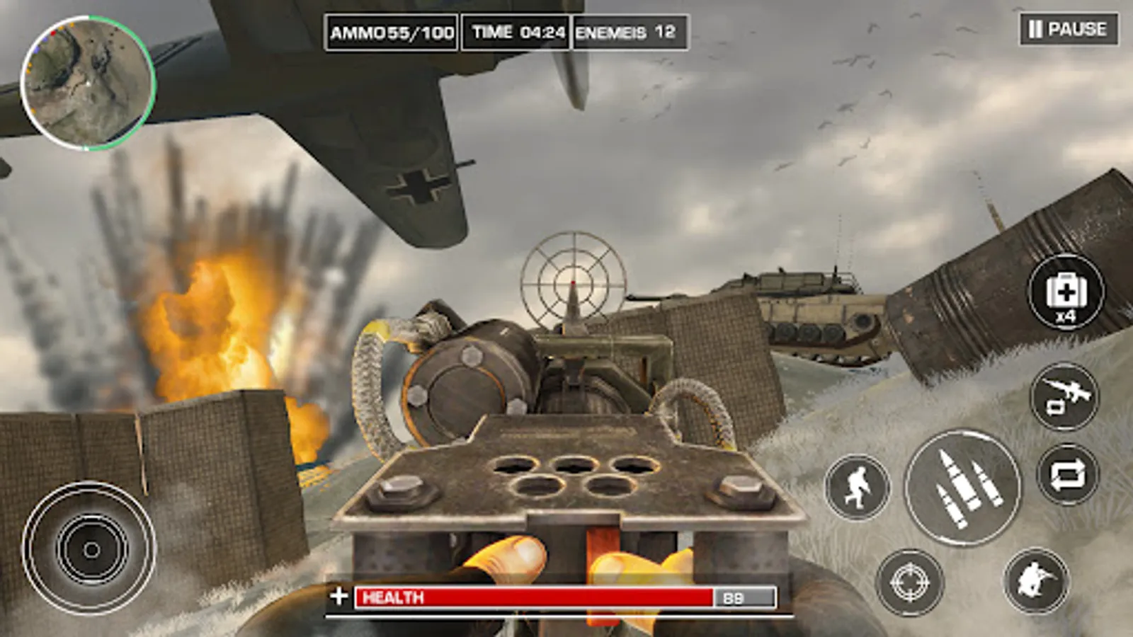WW2 Gunner- World War Strike has many interesting game modes. The commando of this shooting battle has to use firepower and strength. Major operations of WW2 gunner war include: