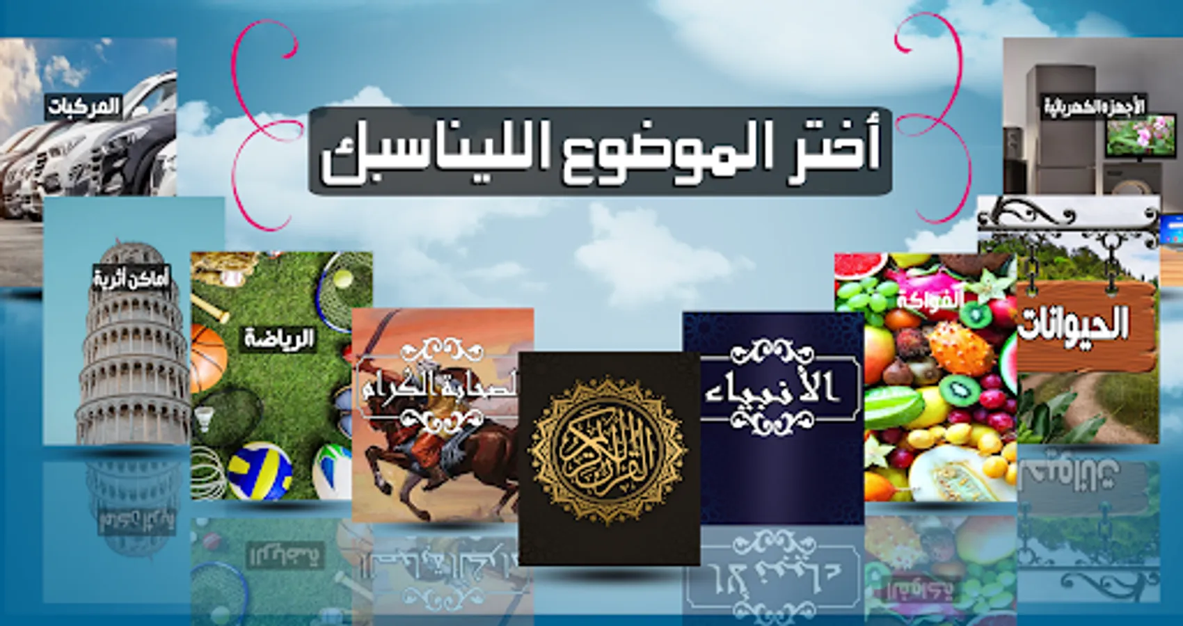 • Choose the type of topic, such as animals, clothes, foods, or Islamic groups such as messengers, companions, Quranic surahs, or others.