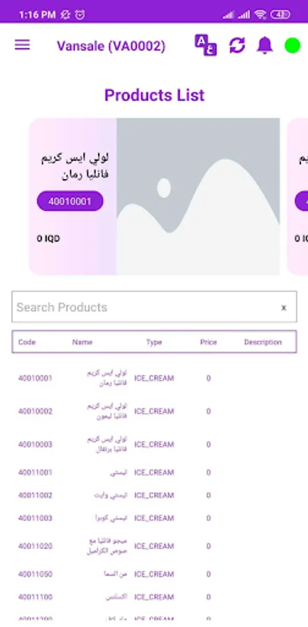 This app will help distributer agents (Van Sale) to sell in whole sale easily and track product quantities, and print invoice bills on thermal printers
