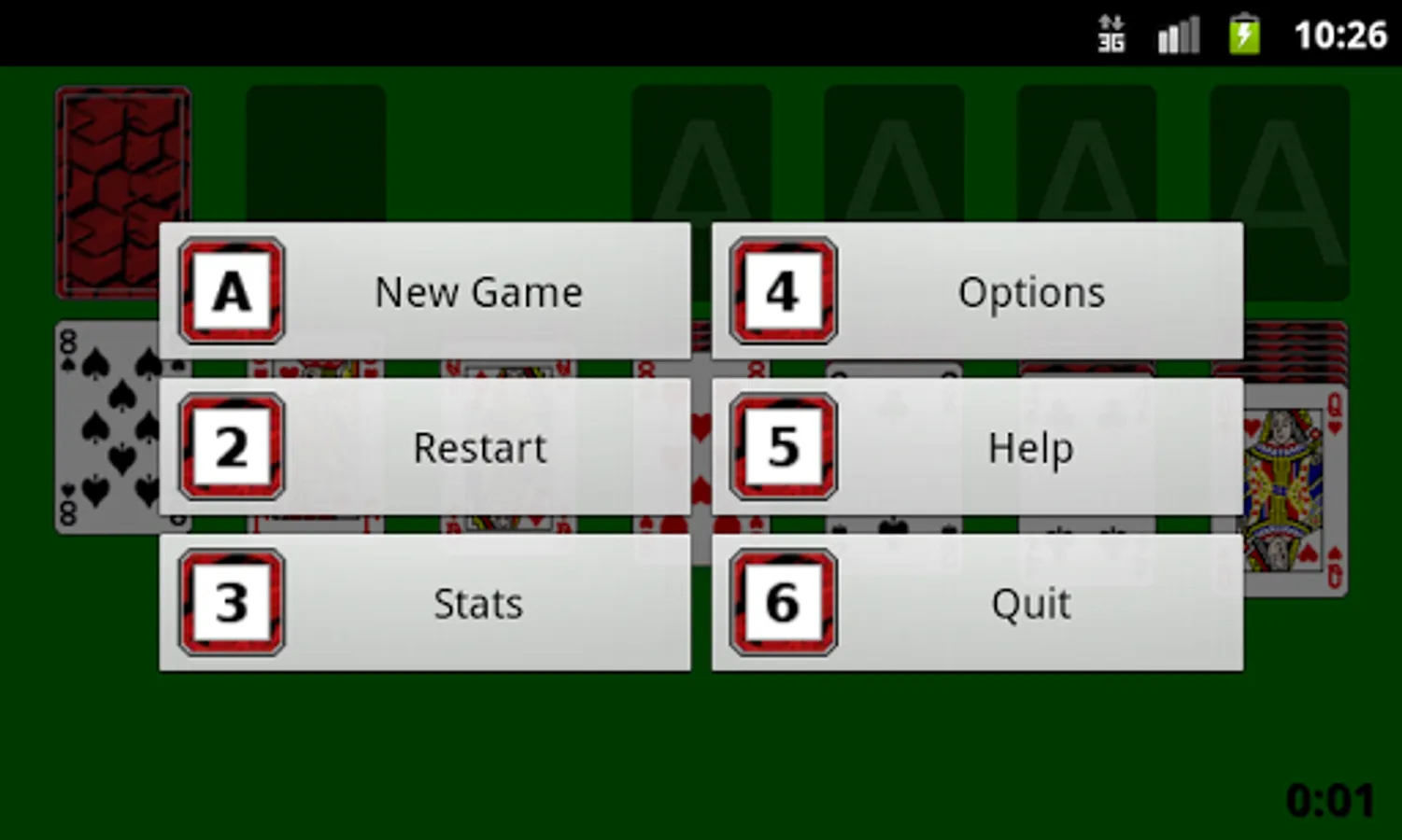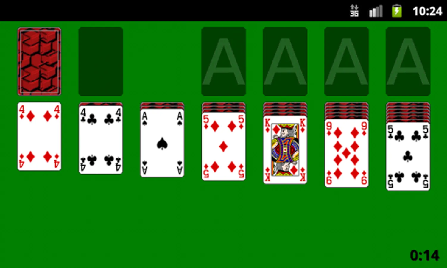 Msolitaire is another solitaire derived from the Ken Magic one, to run in modern phones and tablets. It uses the original user interface, so old users will be confortable. New users must know that the back key undoes a move, and to quit the game you must open the menu and select "quit". If your phone doesn't have a menu key you can use a double tap on the green backgrround instead.