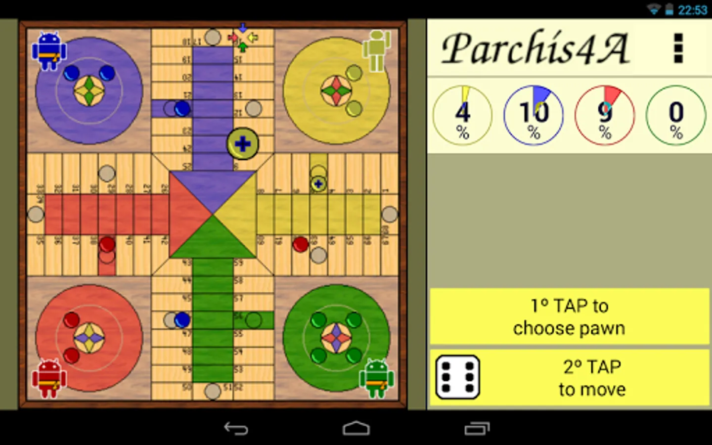 Parchís4A is an Android version of my old Parchís game for DOS and Linux.