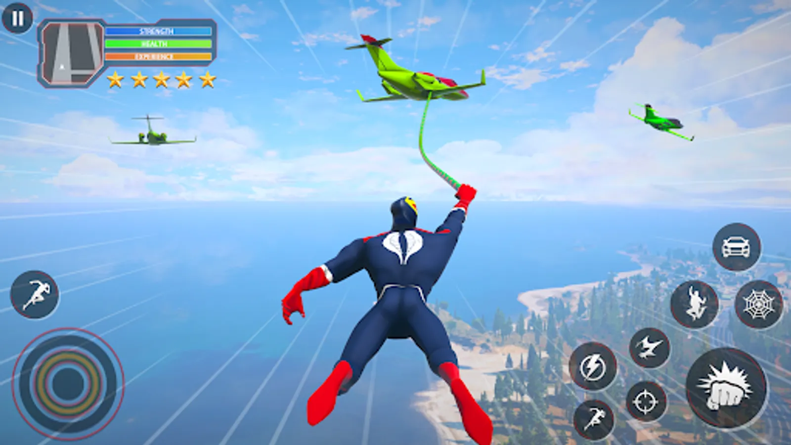 Welcome to spider fighter rope hero game, super hero try to save the Miami city, Super hero games. Spider Rope Hero man, superhero fighting is a real fight and kungfu fighting games, new superhero spider fighting and flying game theme. Spider fighter superhero rope man is a spider man game, where you need to fight against bad gangsters and and complete all superhero missions to pass all levels and save the Miami city in this super spider hero game. The spider fighting action game is in the city of criminal gangs. Cruel crime lords attacked the city and your spider superhero should defeat the mafia! Civilians need your help, to fight gangster mafia bosses. There is no chance and the crime city battle is going to ruin, but here you are spider fighter man! So become a superhero to defeat bosses in the city in one of the best spider heroes fighting games!