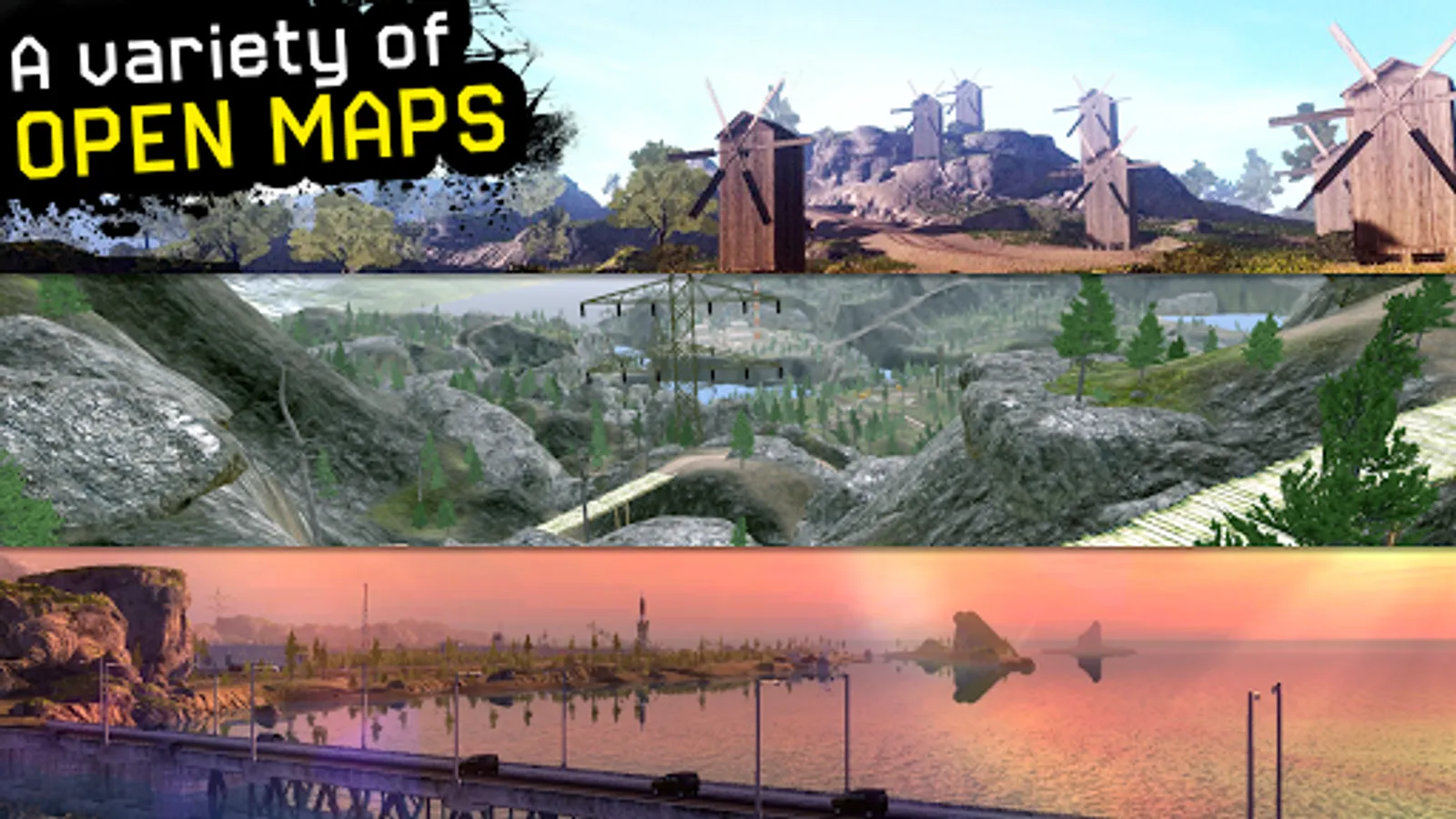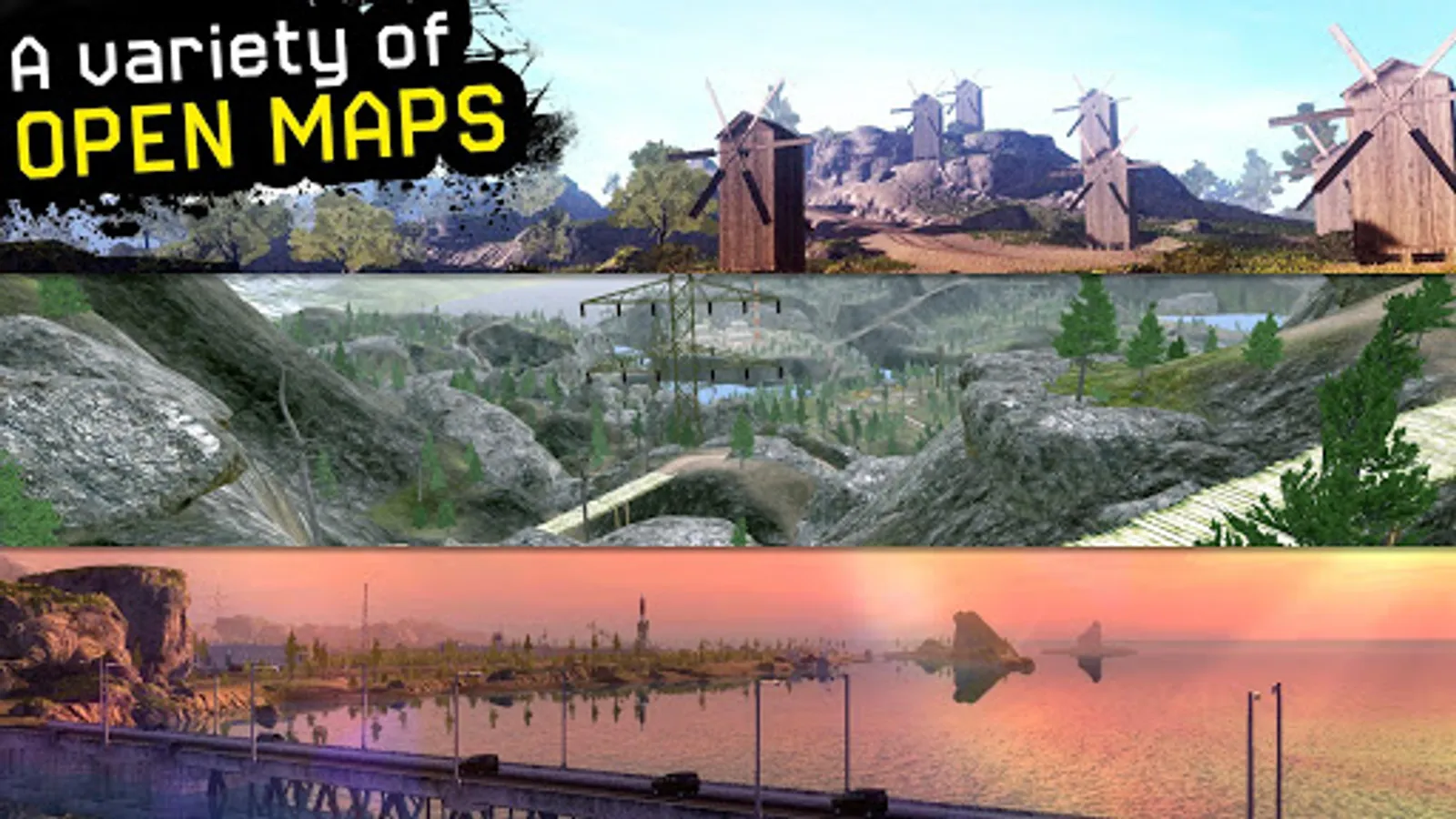 3 large open maps are waiting for you! Forward!