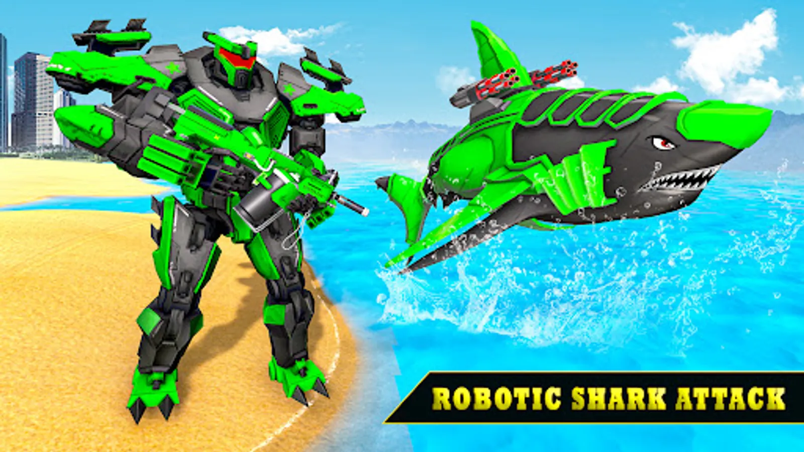Welcome to shark robot transformation games as we are going to launch our new shark robot transformation games 2023. Play flying shark robot transformation games with extensive features of flying robots and robot shooting games. This shark robot car game is the perfect robot war game for the lovers of flying robot transformation games and flying shark. Imagine best robot fighting games 2023 and mega robot shooting games in a small sized bundle of shark robot games. You have to install free robot shooting games if you are looking for thrilling & interesting gameplay of shark robot games.