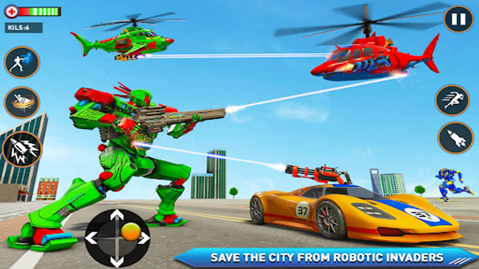 Multi robots transformation game is mixtures of tank robot games and shark robot games. Just imagine a mech robot wars game with various robot transformations and highway racing mode as well in same bundle of robot wala games. If you want to play with unique powers and customizations of mech robot transform game then this robots game is perfect for you. This car robot game is one of the finest multi robot games you have ever played. Innumerable flying opponents and super powers give you the thrilling gameplay of helicopter robot battle games 2023.Welcome to the world of transforming robot games where mech robots are going to fight with evil robots and multi robot car transforming games with unique ideas. This robot game provides a chance to experience multiple mech robots in a single package robot car game. Multi robot war is the blend of jet robot games and car robot games with open world environment. Mech robot game with different transformation and highway racing modes of multi robot transformation war and mech robot battle. Let's play drone robot with unique powers and customization, multi robots in this mech war game. This car transform robot game is one of the best robot transforming games which is perfect for fighting game lovers.