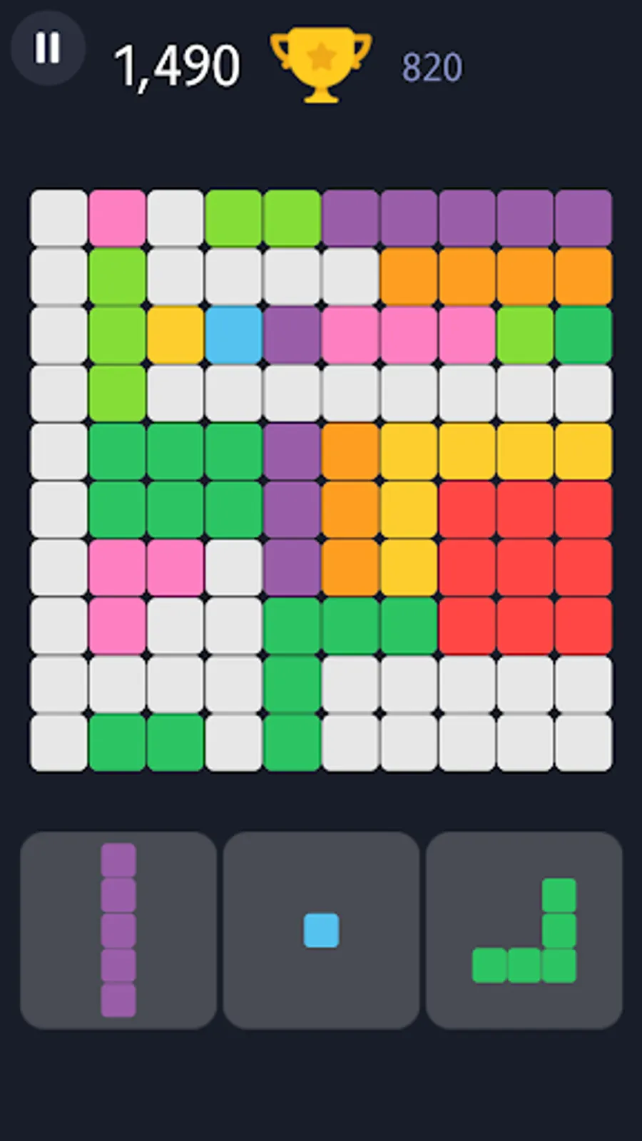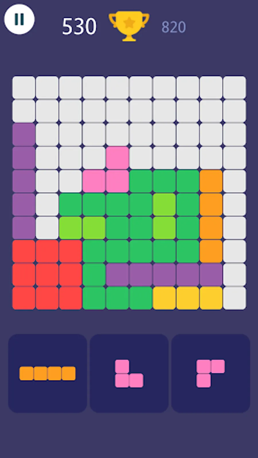 1010 Block Puzzle is a simple yet challenging and addictive game. It can be played within few seconds anytime to refresh your mind.