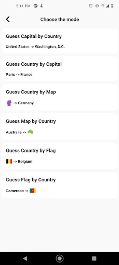 The Quiz will challenge you with quizzes about countries, capitals, flags, maps, etc...!