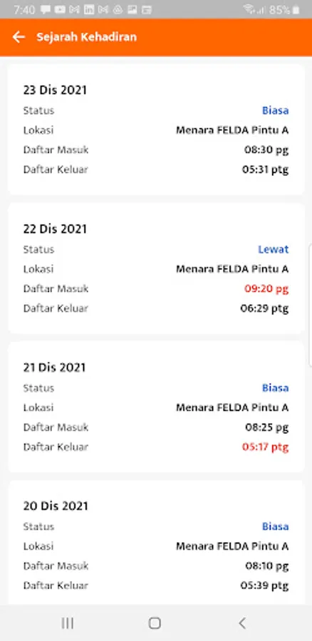 This app is used by FELDA staff who are outside the office for record and attendance purposes.