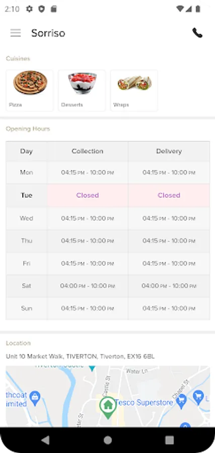 Sorriso in TIVERTON will always be offering great food at affordable prices. Please feel free to browse our new app and place your order online. Remember to check our new online ordering site to get up to date prices and exclusive special offers, limited to our online customers only!