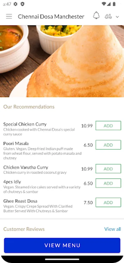 With our mouth-watering meals and super fast restaurant & takeaway service, we intend to create magic for all of our customers. We assure you that every single member of our staff will give you the finest food experience which will undoubtedly entice you to come back for more. Great food and limited time special offers are always available at Chennai Dosa Manchester, Northenden. Feel free to browse through our brand new app and place an online order.