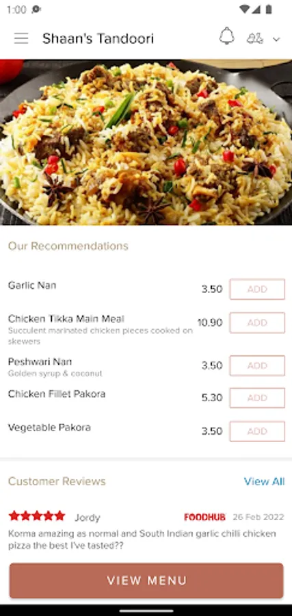 We offer a world of flavours and spices, which all comes together to create a dining experience that will transport you to another world. Our chef prepares all of our authentic dishes completely fresh, we also offer a wide range of authentic Indian cuisine to suit anyone's tastes. We have a new online ordering app which displays our entire menu - so please feel free to browse, find your favourite or try something new, and enjoy our restaurant quality meals in the comfort of your own home.