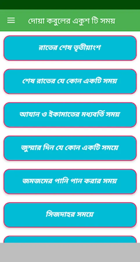 দোয়া কবুলের উত্তম একুশটি সময় নিয়ে এই এপস্ টি করা হইয়াছে.