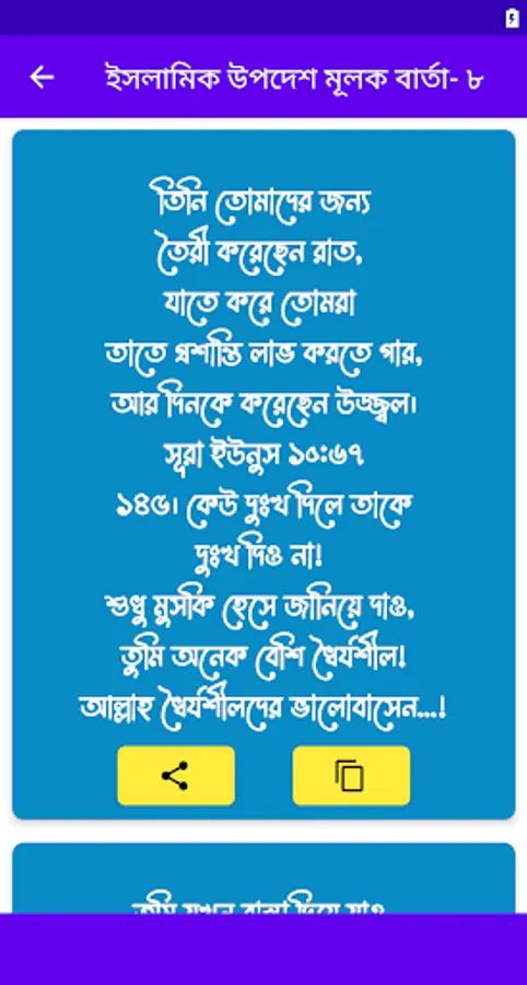 আসসালামু আলাইকুম সকল বন্ধু-বান্ধনগন, আমাদের আরও একটি শিক্ষণীয় নতুন অ্যাপ্স নিয়ে এলাম আপনাদের মাঝে, আমাদের এই অ্যাপ্স টি হলো ইসলামিক উপদেশ মূলক একটি অ্যাপ্স, অ্যাপটির ভিতরে ইসলামিক ছোট ছোট শিক্ষণীয় উপদেশ মুলক বার্তা রয়েছে, খুব সহজ করে সাজানো হয়েছে প্রত্যেকটি আর্টিকেল। আশা করি বড়,ছোট সকলের কাছেই অ্যাপ্সটি ভালো লাগবে। এবং শিখা জাবে জানা ও না-জানা অনেক উপদেশ মূলক বার্তা ও আরও ভিন্ন কিছু ইত্যাদি। বন্ধুরা তোমাদের কাছে অ্যাপ্সটি ভালো লেগে থাকলে অবশ্যই আমাদের ফিডব্যাক এর মাধ্যমে জানাবে- ধন্যবাদ সবাইকে।
