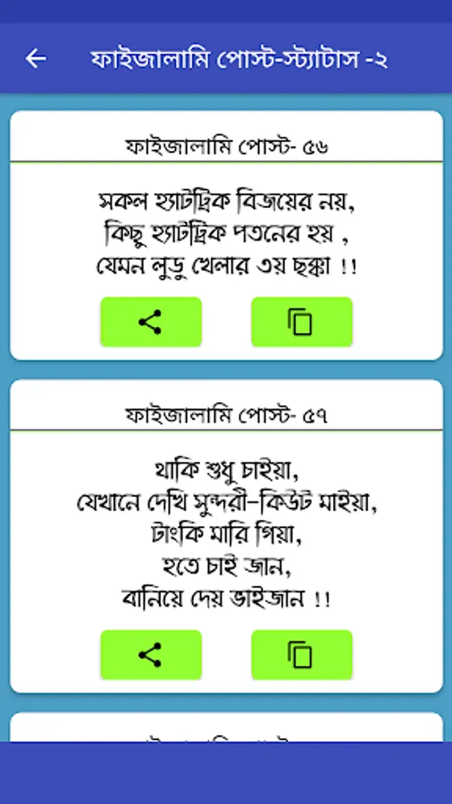 ফাইজলামি ফানি পোস্ট ও স্ট্যাটাস - আর কতো মন খারাপ করে থাকবেন ।বন্ধুদের সাথে একটু দুষ্টুমি ফাইজলামি না বললেই নই । কিন্তু ফাইজলামির একটা লিমিট থাকে - সত্য বলতে কি হাসাইতে হাসাইতে জীবনটাই বেদনা - এমন অনেক আছে আমাদের ফ্রেন্ড সার্কেলের মাঝে যে অনেক ধরনের ফাইজলামি ফান করে থাকেন । তাই সকলের জন্য নিয়ে আসলাম এবার বাছাইকরে বাংলার সেরা ফাইজলামি ফানি পোস্ট ও স্ট্যাটাস অ্যাপটি ।