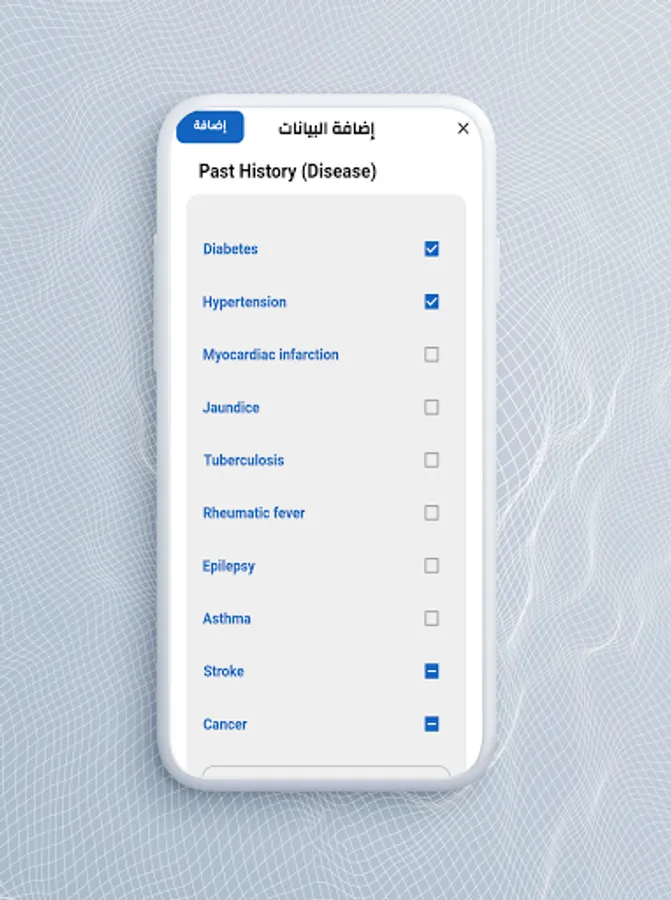 * إضافة عدد لا محدود للمرضى وتخزينها سحابياً.