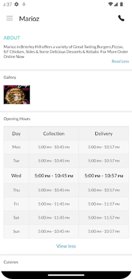 Order food online from Marioz It's so easy to use, fast and convenient. Try our new, online app which contains our entire takeaway menu. The Marioz is located in Quarry Bank . You can now order online, all your favorite dishes and many more delicious options, and have them delivered straight to your door in no time at all.