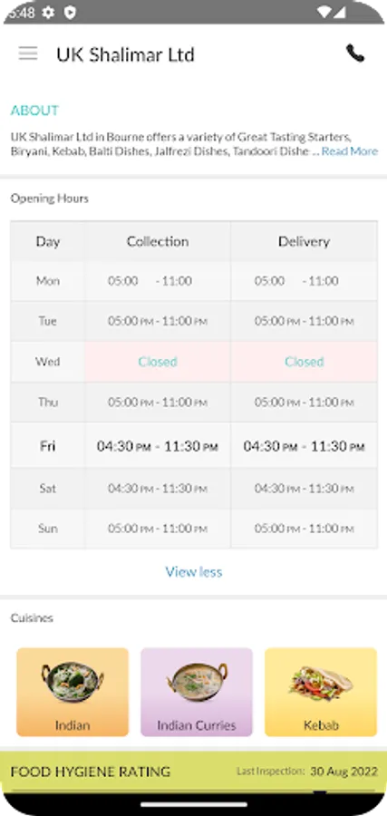 Thank you for visiting UK Shalimar Ltd in Bourne. We hope you enjoy our online ordering app and your food.