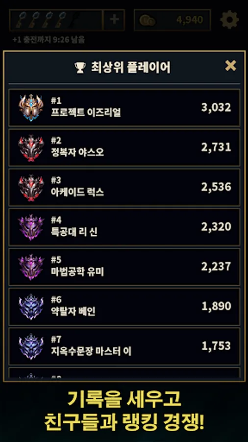 From irons to challengers. Clearly show your hearing roll skills in tiers.