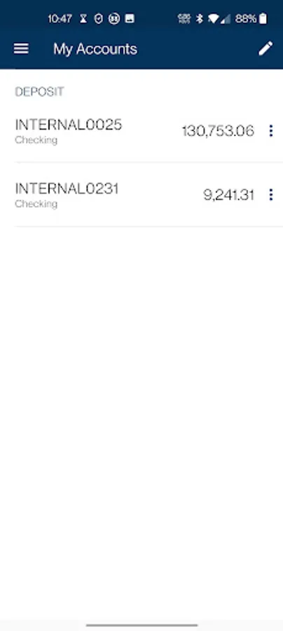 The app supports all account types including Checking, Certificate of Deposits, Money markets, Savings, Loans, and Line-of-Credit.