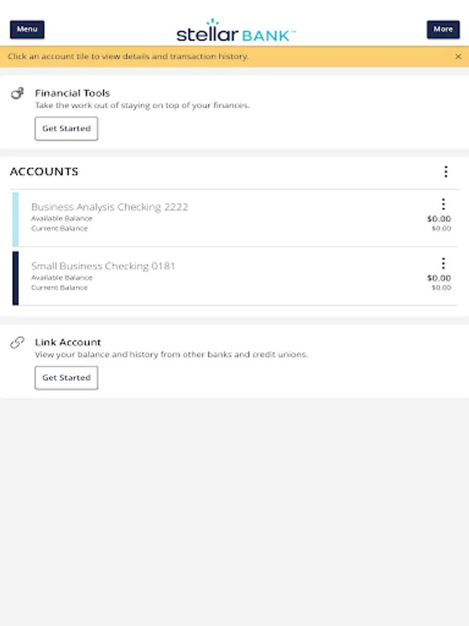 With the Stellar Bank Mobile App, your mobile device instantly becomes your nearest banking center. And it’s always open. Simply access your accounts with your existing login credentials to view account balances, make deposits, pay bills, transfer funds, set up alerts, find the nearest ATM or bank location, plus so much more!