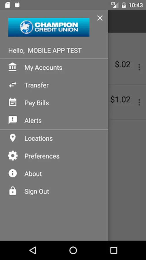 Champion CU Mobile Banking supports all account types including checking, certificates of deposit, loans, and lines of credit.