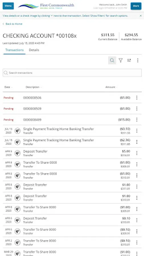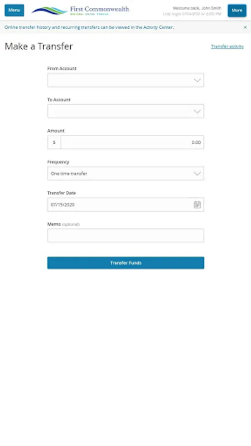 o Transfer money between your First Commonwealth account and outside financial institutions