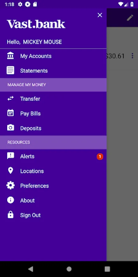 Vast Mobile Banking supports various account types including checking, savings, money markets and loans. Regular account service charges apply. Network connectivity and usage rates may apply. Contact your wireless provider for more details.