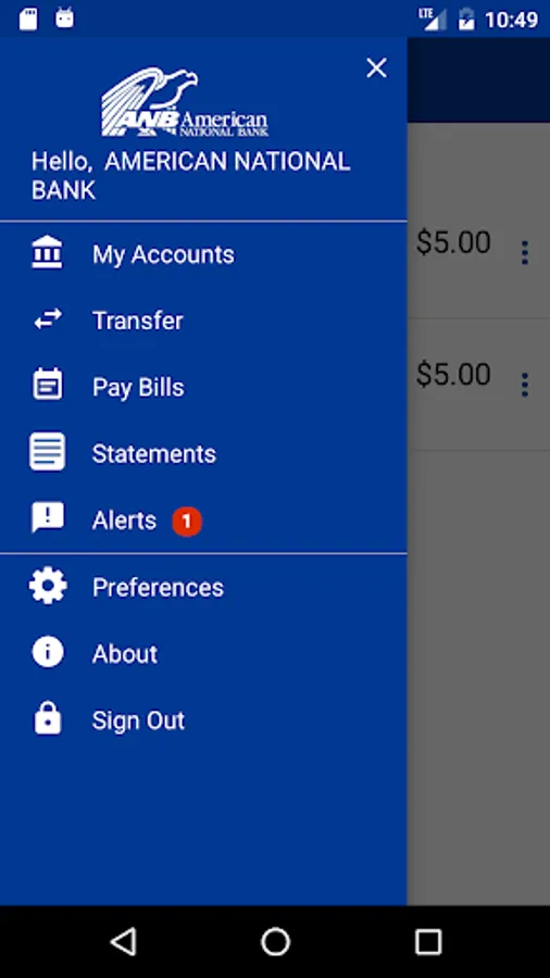 ANBMobile is a mobile banking solution that enables American National Bank (Oakland Park, Florida) customers to use their Android phone to view accounts and transactions and initiate routine banking transactions. Customers can view account balances, transaction history, and account alerts, as well as initiate account transfers and pay bills.