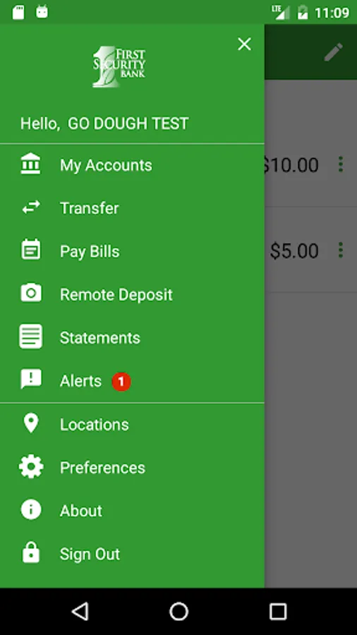 First Security Bank goDough is a mobile banking solution that enables bank customers to use their Android devices to initiate routine transactions and conduct research anytime, from anywhere.  Customers can view account balances and transaction history, view account alerts, initiate account transfers and pay bills.