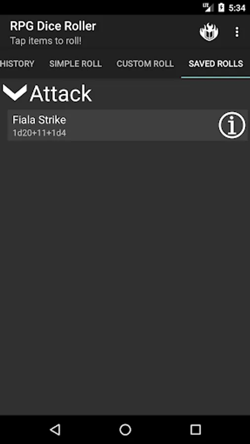 -- Create customs rolls and save them (A "Fiala Strike" is 1d20+1d4+11)