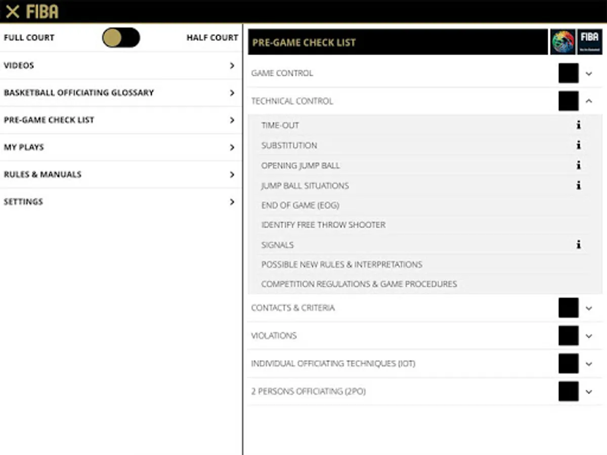 Specialised APP for pre-game preparation of the basketball referees developed by FIBA.