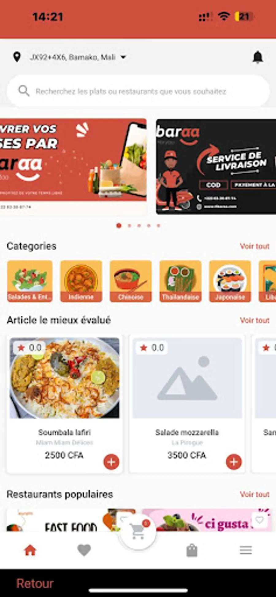 Fibaraa offre également aux restaurateurs un service de livraison rapide et fiable, grâce à notre flotte de livreurs professionnels. Les restaurateurs peuvent également choisir de gérer leurs propres livraisons à travers l'application, en utilisant des coursiers ou des employés de leur propre restaurant.