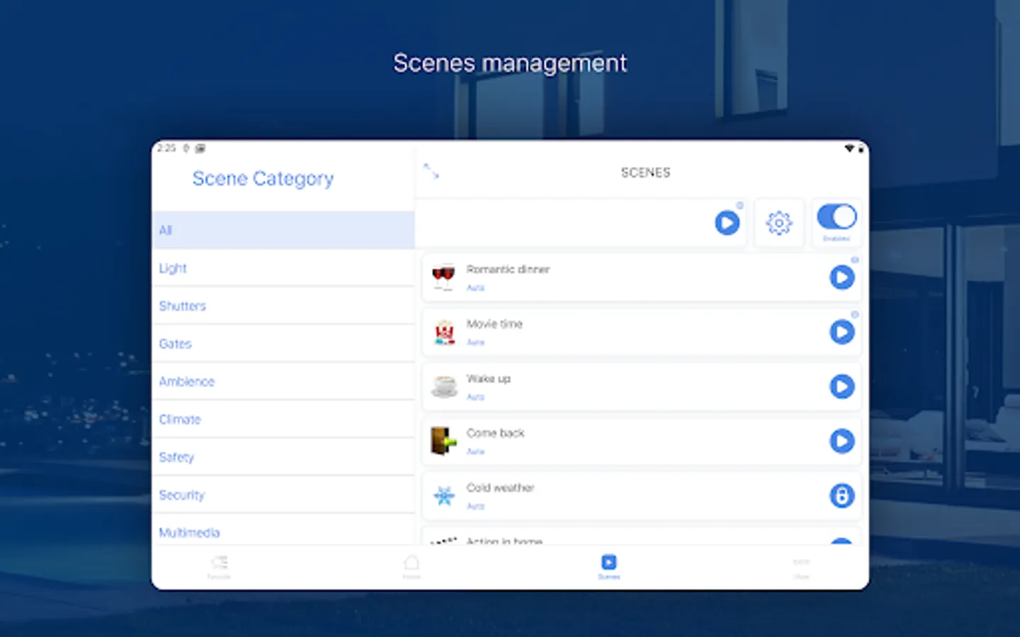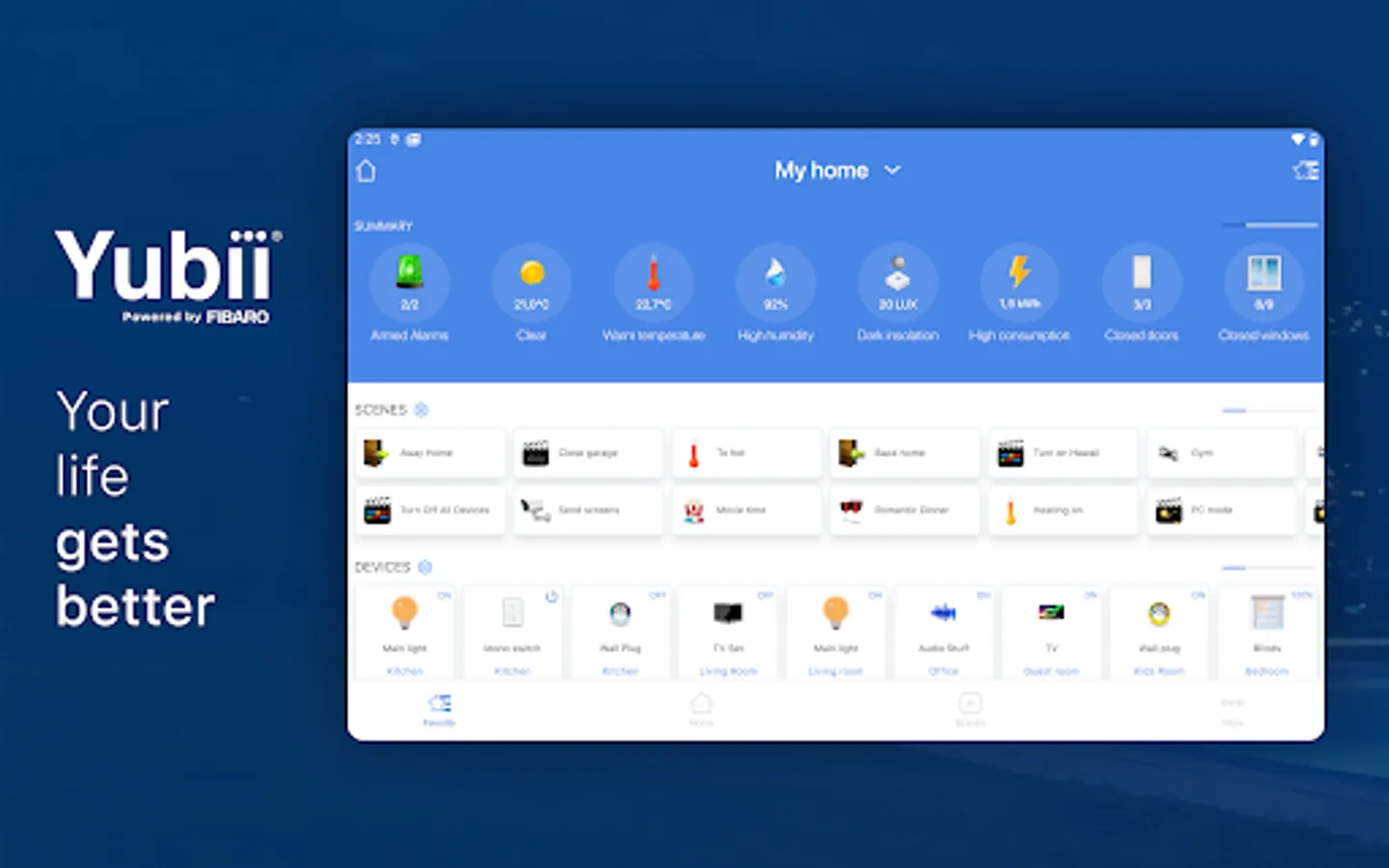 YUBII Home Center presents a very convenient way of managing all the scenes that you use at home. Monitor them, change the settings and switch on and off within one click.