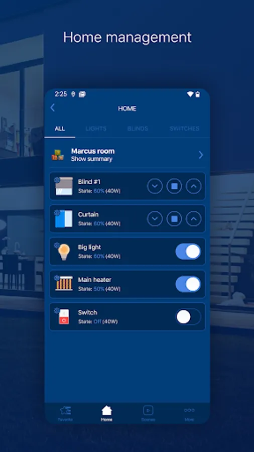 See the Room Summary to manage all the devices in the system in a given room. It’s a comfortable and quick way of adjusting the space to your needs at all times.