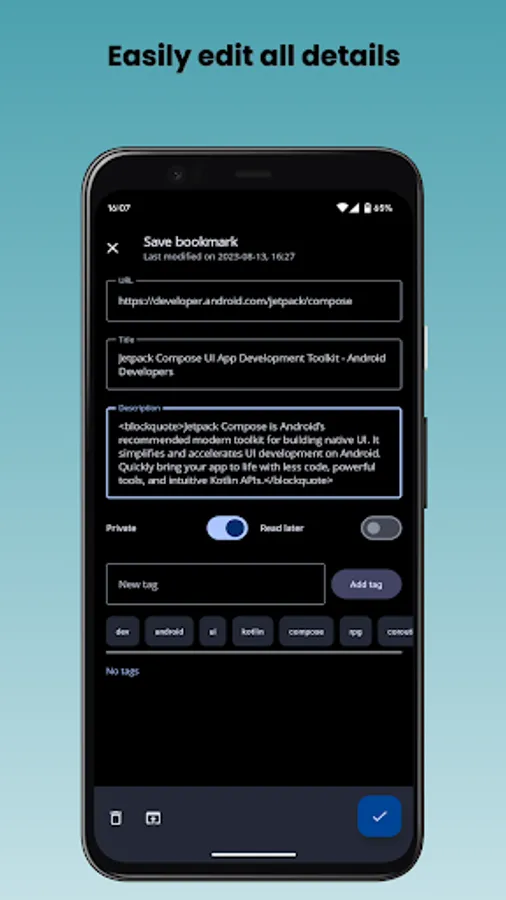 It's easy and simple to manage your bookmarks with Pinkt. Just as the original service there are no ads and no third-party tracking, and the code is completely open source, check the end of the description for the link to the repository.