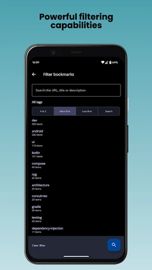 • Search by term: find bookmarks that contain the term in its URL, Title or Description