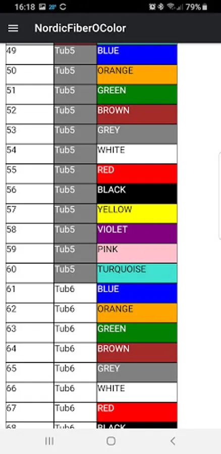 FiberColorCode is designed to help fiber technicians in Denmark, Norway and Sweden. The Color codes you can find in the app are the following: S12, Ericsson, Melbye and Ribbon.