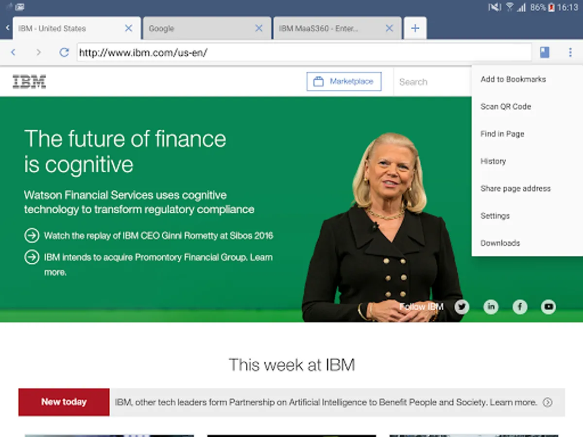 MaaS360 Browser provides a simple and secure way for users to access web content from Android devices.