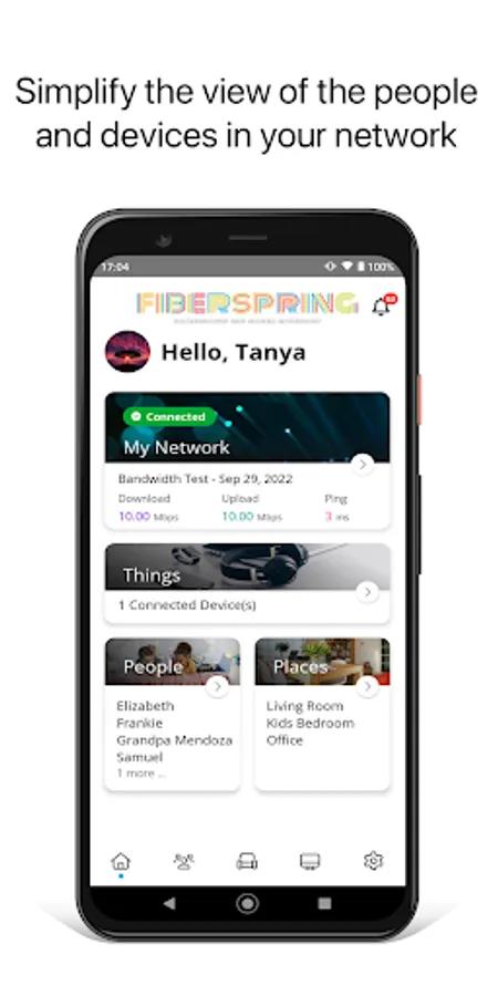 FIBERSPRING is a simple-to-use mobile application that allows subscribers to manage their home Wi-Fi network. Take control with app features such as network security, parental controls, managing network usage, and setting up guest Wi-Fi networks.
