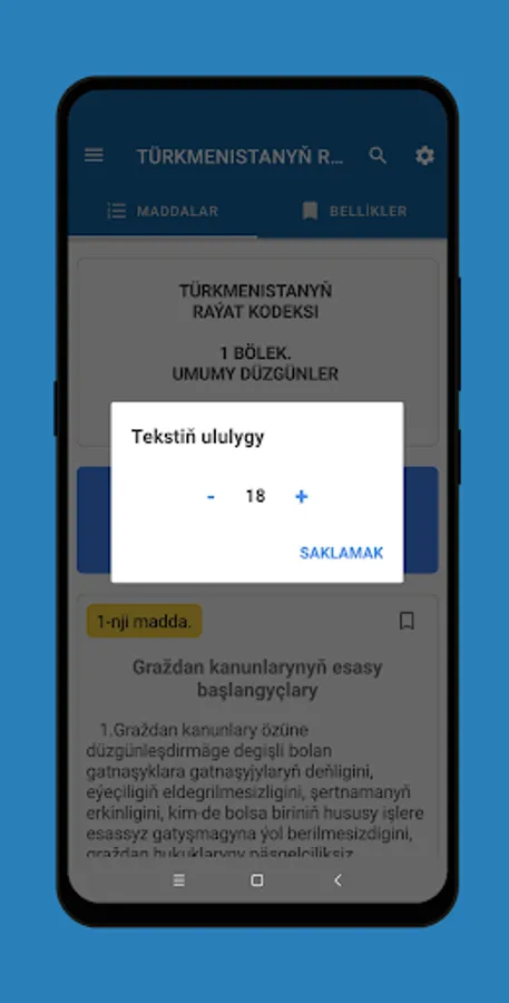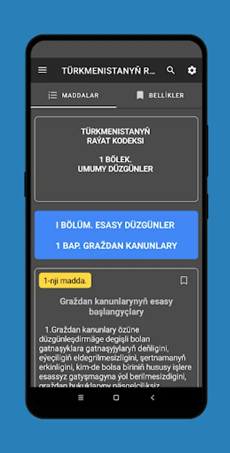 * Aňsat nawigasiýa üçin Türkmenistanyň Jenaýat kodeksiniň mazmuny bolan bölümler we maddalar gizlin paneli.