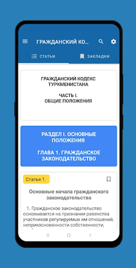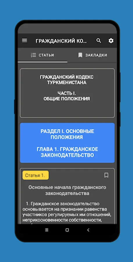 * Hidden panel with the contents of the Criminal Code of Turkmenistan for easy navigation through sections and articles.