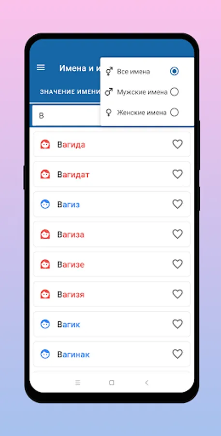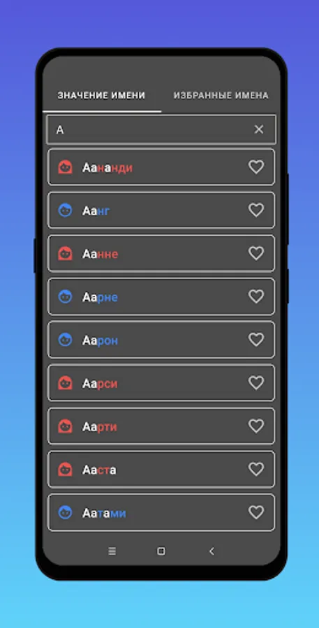 Names and Their Meanings is a handy application in order to choose a name for a child or find out the meaning of the name of your friends and acquaintances. You no longer need to buy large reference books, write down names and their meanings. More than 70,000 name options for your child - in one application and always at hand!