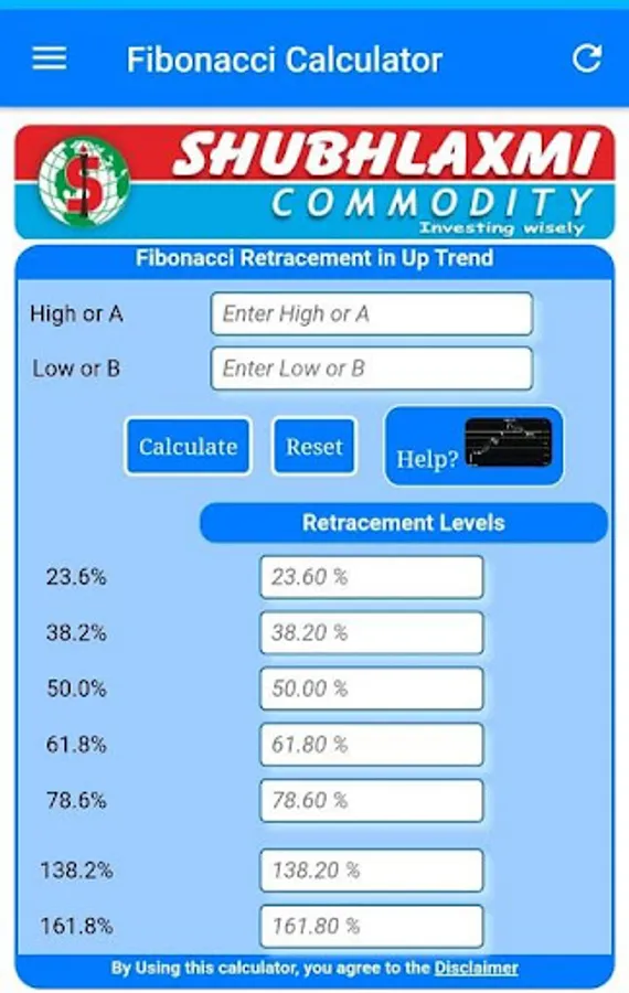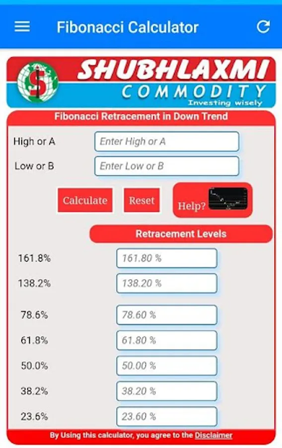 This tool allows you to generate basic Fibonacci retracement values in both up and down trends, by entering the high and low values of your choice. This is a powerful tool for predicting approximate price targets.