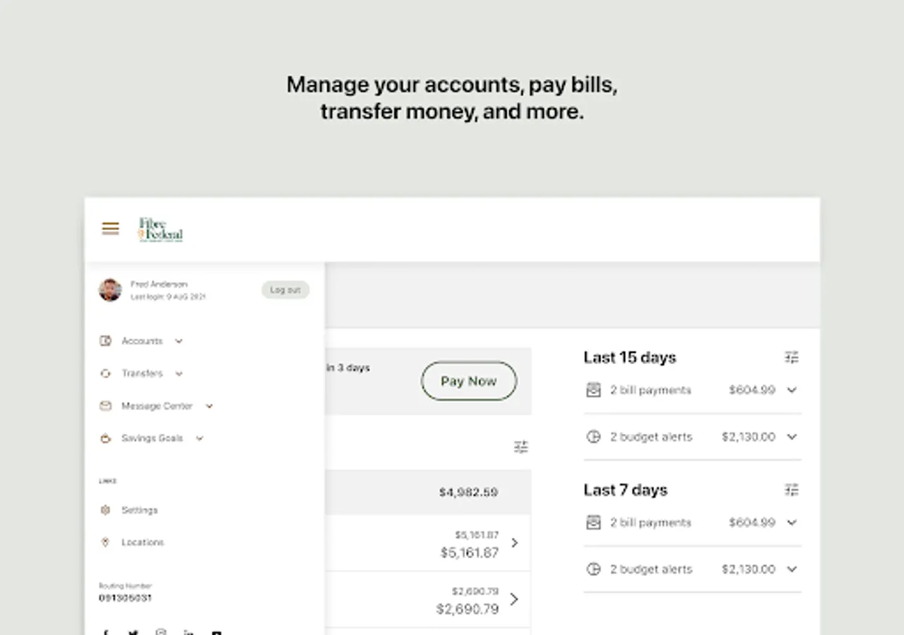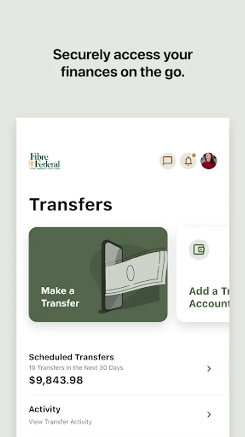 Get the free Fibre Federal/TLC Credit Union Mobile Banking app and access your accounts anywhere, anytime from any mobile device. You can check your available balances, view transaction history, transfer funds between accounts, find ATMs and branches in your area, find a free ATM wherever you go, check out our current rates, and more.