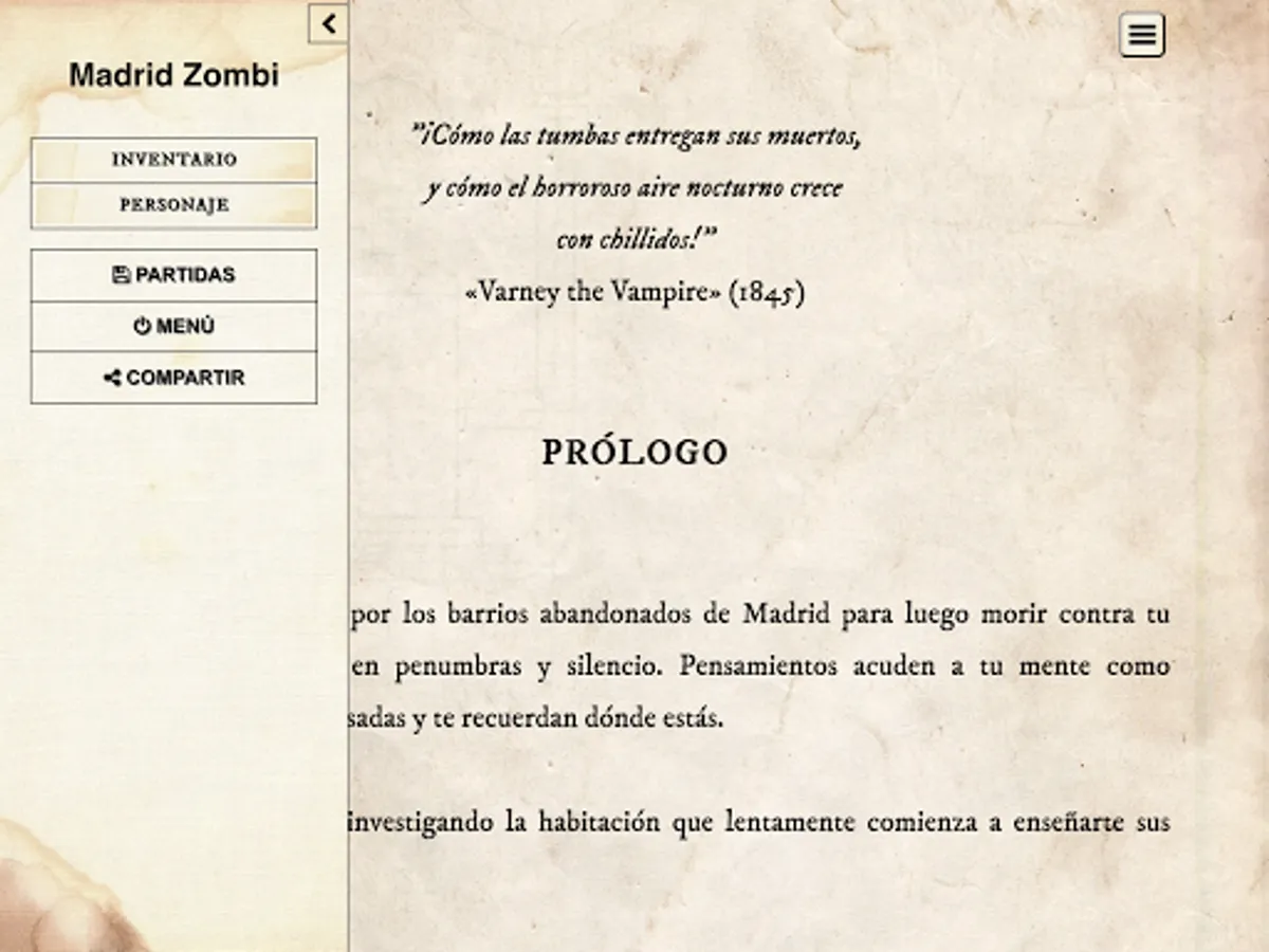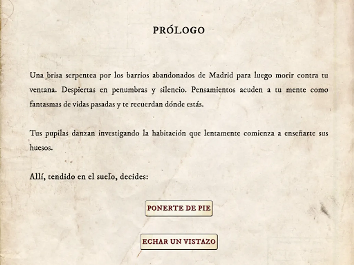 «Madrid Zombi» is an episodic novel of interactive fiction — choose your own style of style — where you are the protagonist. Can you survive the apocalypse in a Madrid infested with zombies?