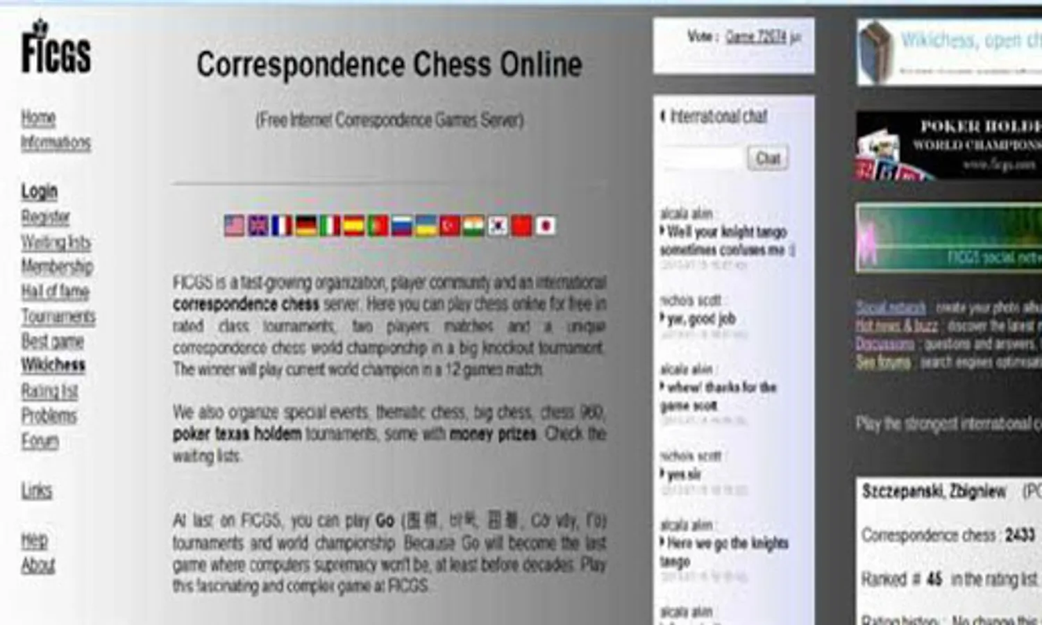 To login or to play correspondence chess, you can also find the FICGS applications by clicking FICGS.com