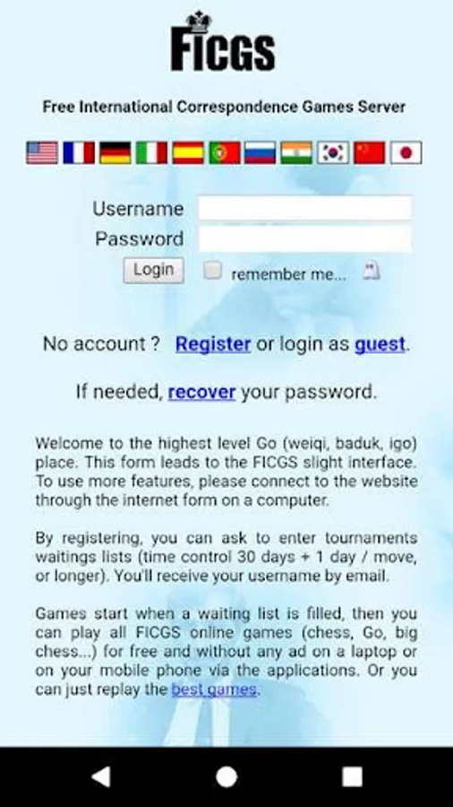 Note: There is no gambling at FICGS, there is no chancy game with entry fee & money prizes. It is not possible to entry a tournament with an entry fee via the applications.