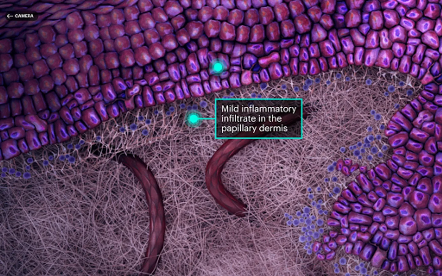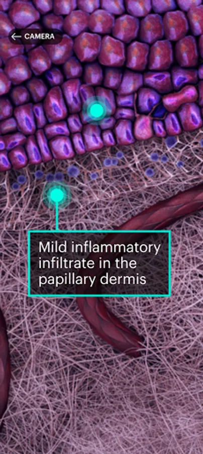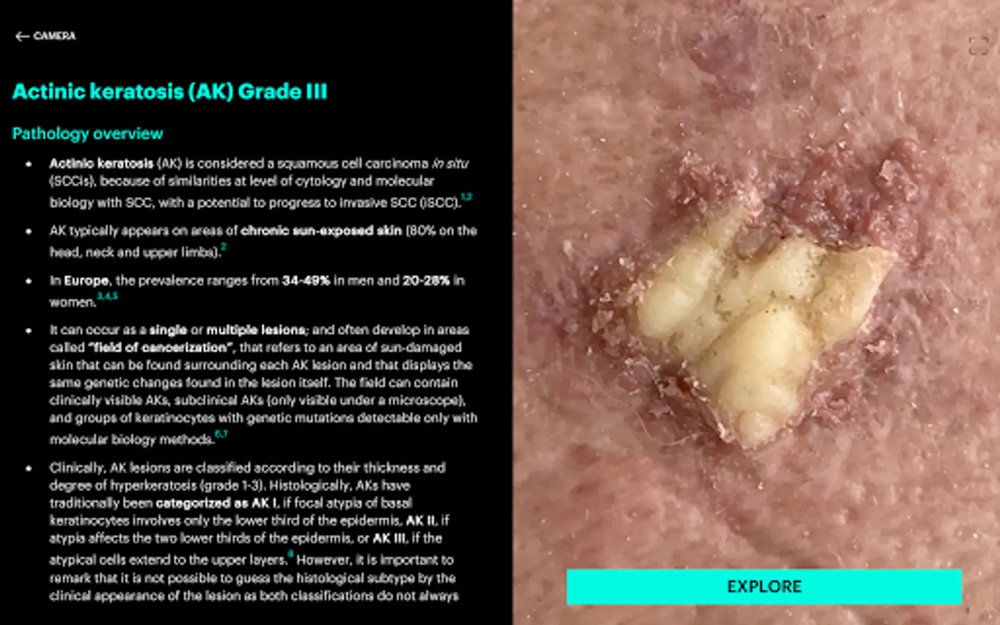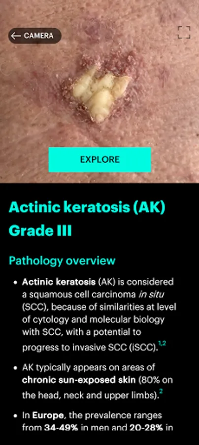 The App will explain to the user the scanned lesions with text, example images or a histological section (where available) and all the content is in English.