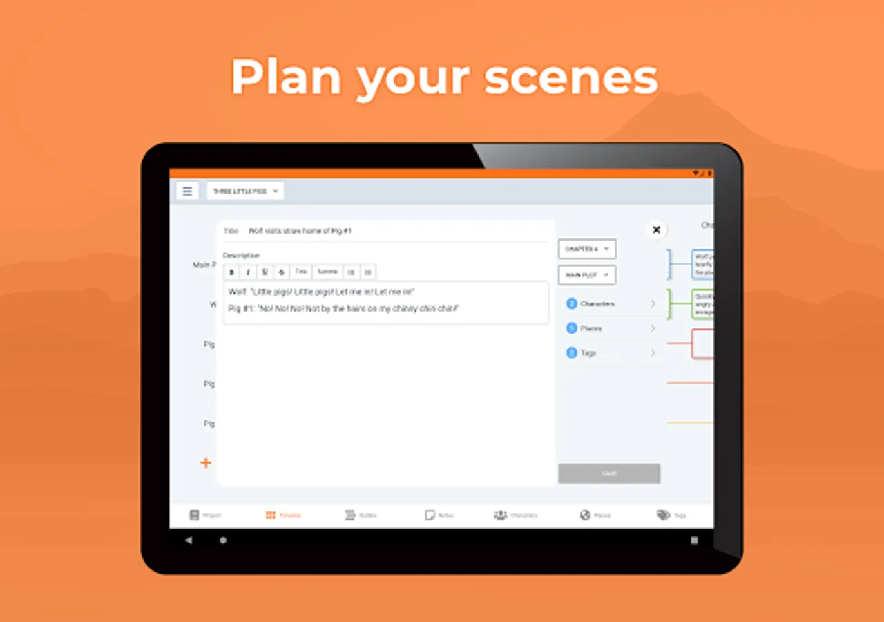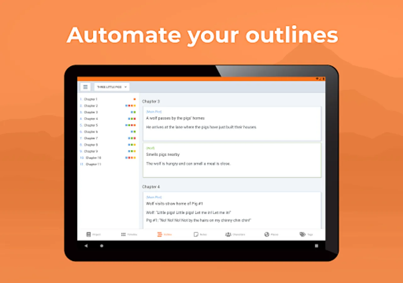 Easily arrange (and rearrange) your scenes, plots, and character arcs so you can quickly find your way to the end of your tale — no corkboard required.